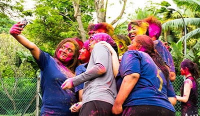 Over the years, Holi has globally become one of the most important and highly anticipated festivals. 13th March, 2017 saw all the students at SP Jain’s Singapore campus come together to celebrate the festival of love and colours. The festival was celebrated with merry-making, culminating in a carnival of colours where everyone played, chased and coloured each other with dry powder and coloured water. One could find people swiping a dash of hot magenta across someone’s forehead; rub a little deep blue on a belly there and then run off laughing.