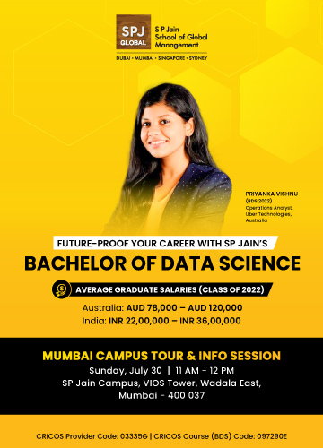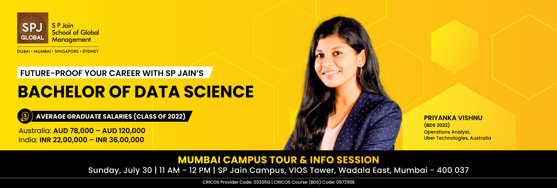 2 As an international student, you may be able to continue to live and work in Australia temporarily following the completion of your Bachelor of Data Science degree at SP Jain. While graduating students can apply for a post-study work visa of up to 4 years per the current immigration guidelines, it is not a guaranteed program outcome. Please check the Australian Government’s Department of Home Affairs website (https://www.homeaffairs.gov.au/) regularly for eligibility, more information and updates.